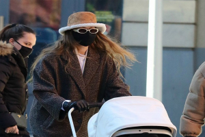 Новий вихід моделі з новонародженою дочкою